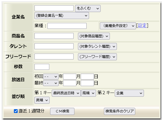 ・首都圏(東京)におけるTVCM情報から1週間分のCM情報検索が可能 |