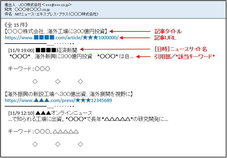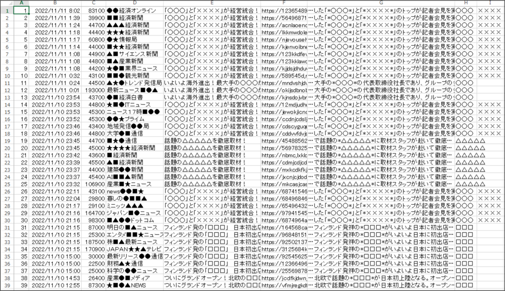 ・記事一覧が生データで届く為、独自のデータベース作成や情報管理に最適です。