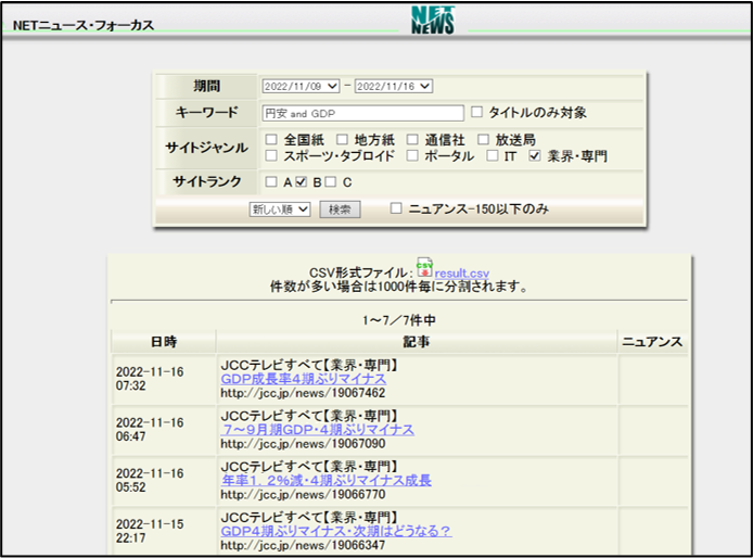 ・フリーワード検索タイプ ・ニュアンス付き ・CSV出力可能