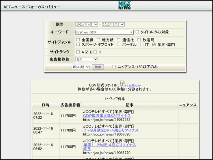 ・ニュアンス & 広告価値換算値付き ・CSV出力可能