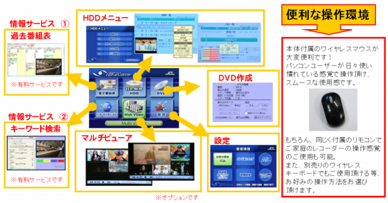 過去番組表(番組単位検索)・キーワード検索(記事単位検索)で、大量の録画映像から目的の映像を簡単に視聴・編集・ダビング。 |